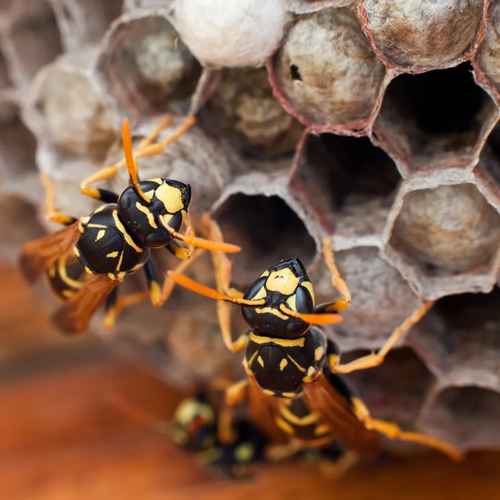 Wespen werden durch Nahrung angezogen und suchen geschützte Hohlräume für den Nestbau.